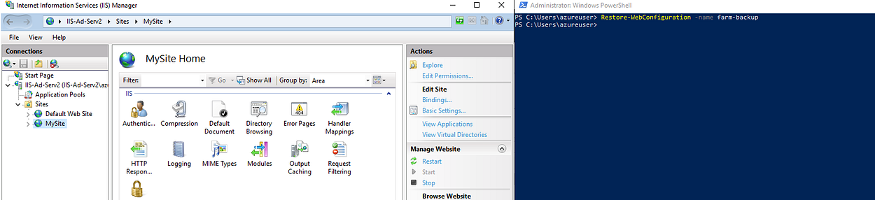 Having done that, we can proceed to restore the backup here in “IIS-Ad-Serv2”