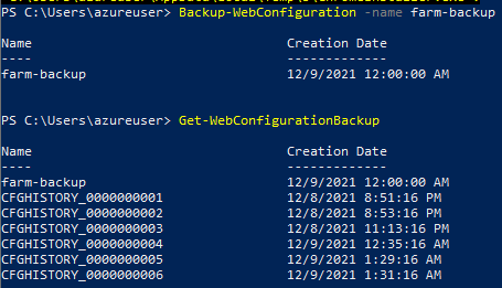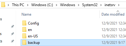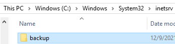 > Backup folder location: “C:\Windows\System32\inetsrv”