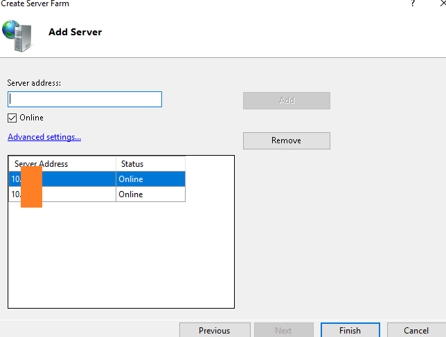 Next, it is going to ask you for “Server address”. Where should the requests for this Public IP Address should actually go? Here we are going to put the IP addresses from “IIS-Ad-Serv1” and “IIS-Ad-Serv2”.