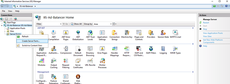 So, if a request comes to the public IP of the “IIS-Ad-Balancer”, this, with the help of “URL Rewrite” module(which got installed when it installed ARR) will send it to one of these IP’s.