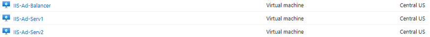 I created three VM’s within a Resource Group in Azure. Each VM has Windows Server 2019 and they all are within a Vnet. Installed IIS with just defaults on each VM.